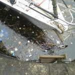 ….and yes, that is a picture of the bow of Challenge Wales with some ducks swimming by amongst plastic and wood debris